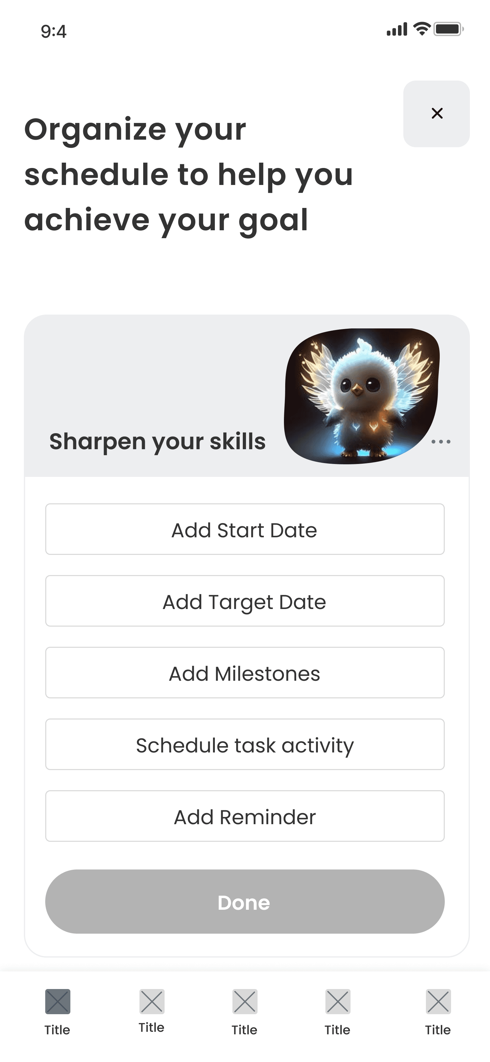 As a user, Eva wants to select a goal and create a list of tasks to practice her Figma knowledge, so that she can brush up on her UI skills and ultimately find a job in tech.