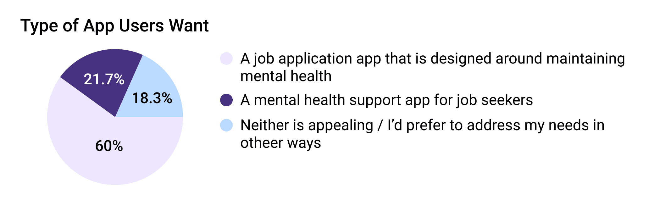 People rarely use mental health apps and prefer job-seeking apps, therefore our app should prioritize job searching & emphasize mental health