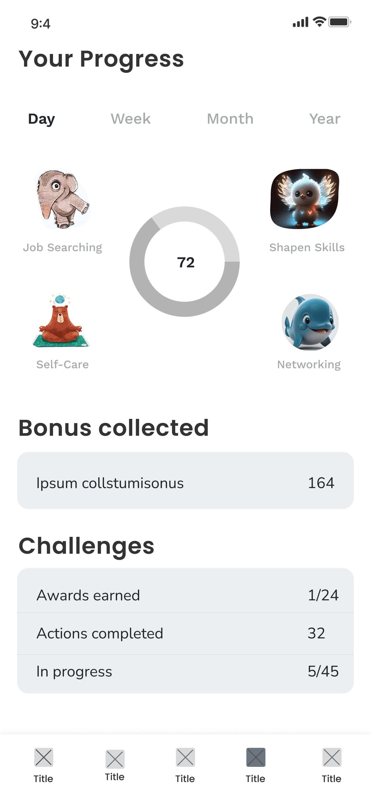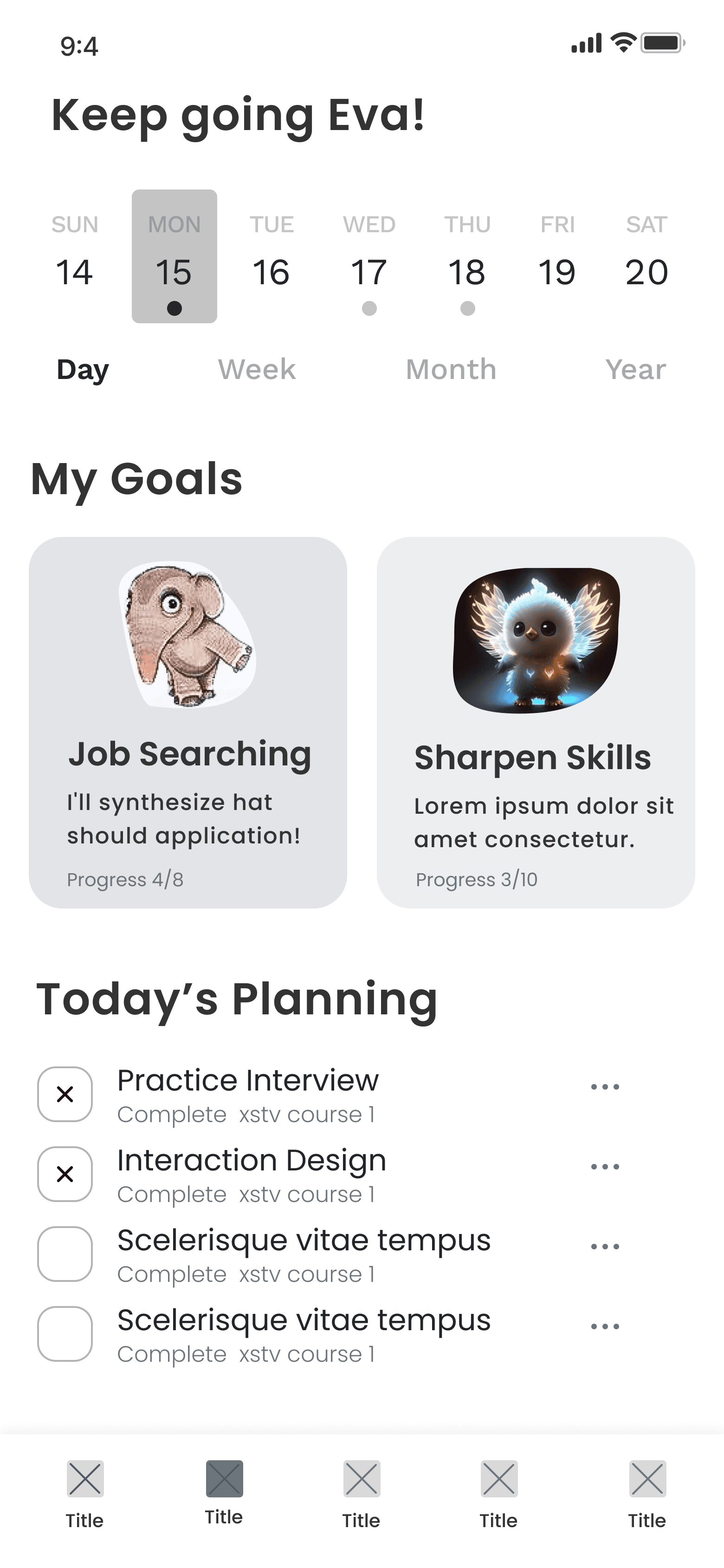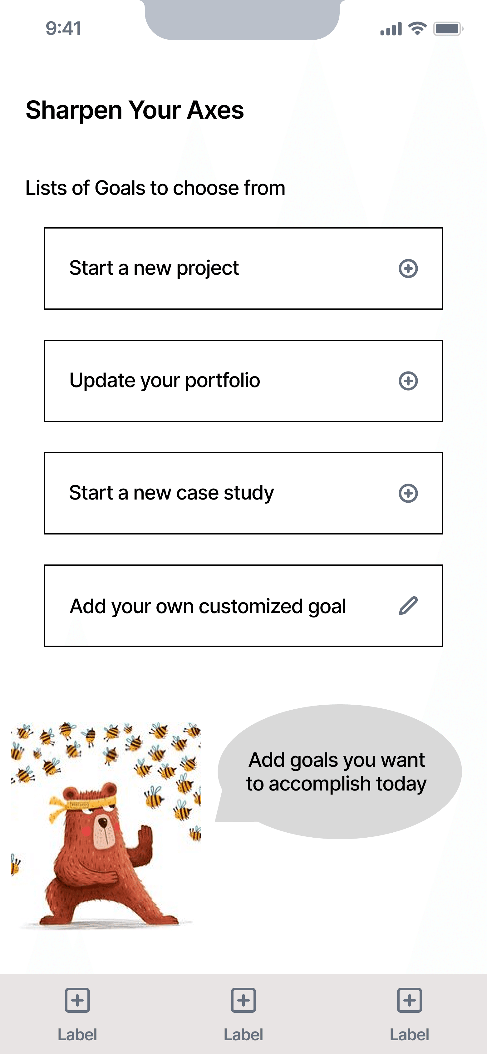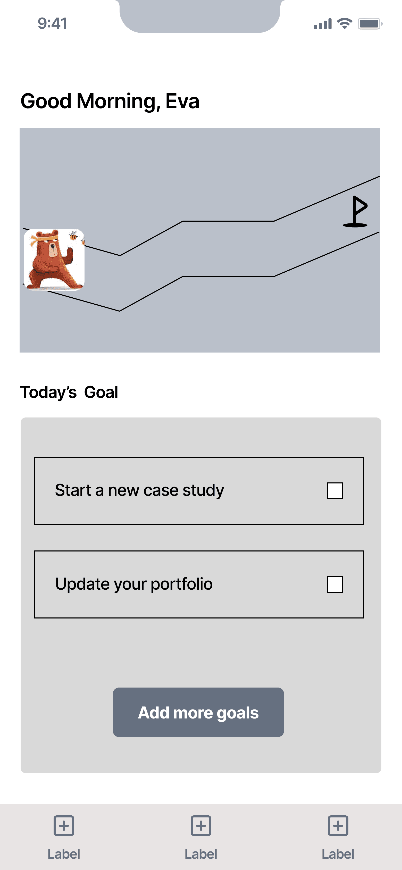 After adding some goals they would like to achieve, a user also needs a personal dashboard for them to keep track of their progress.
