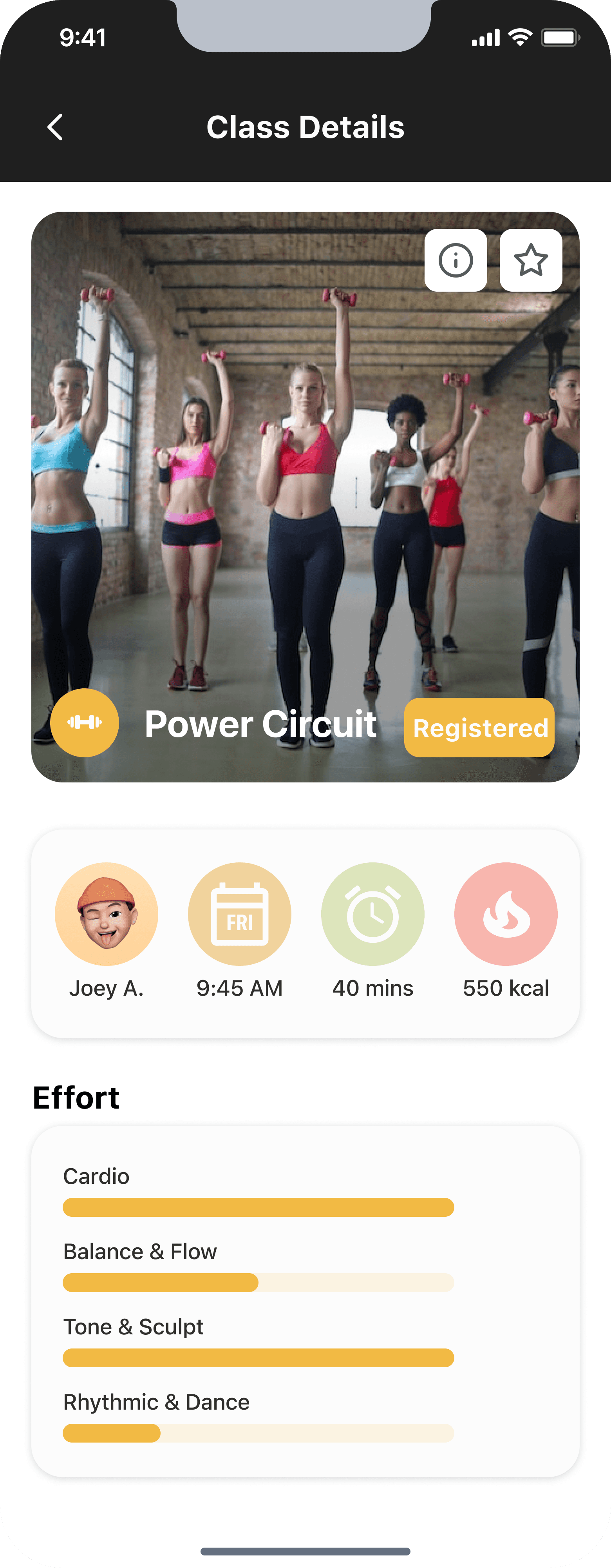 Tap to view more class details