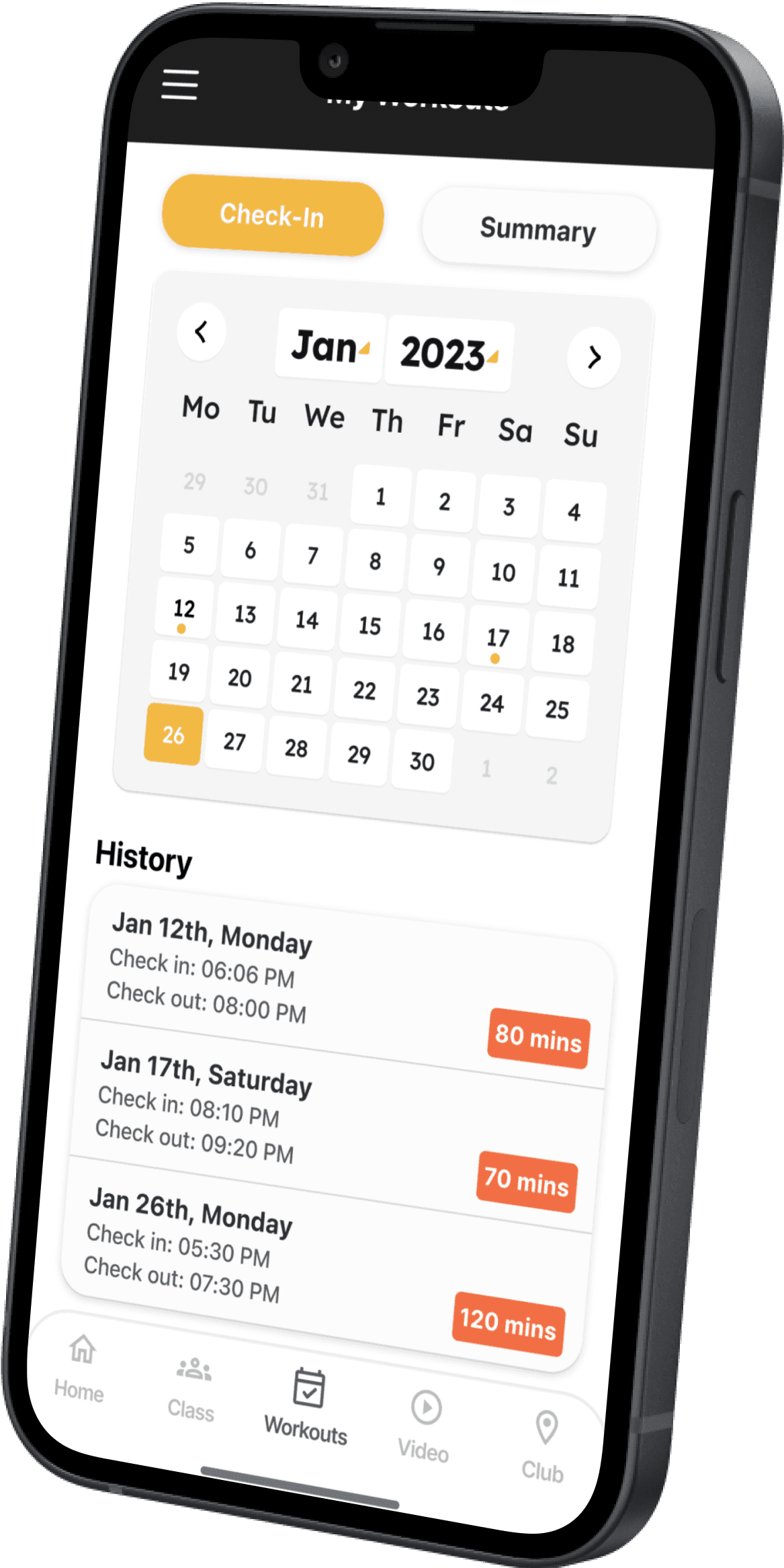 View monthly workout summary